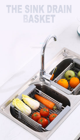 Stainless steel sink draining basket retractable draining rack kitchen vegetable basin fruit basin draining rack draining bowl rack shelf